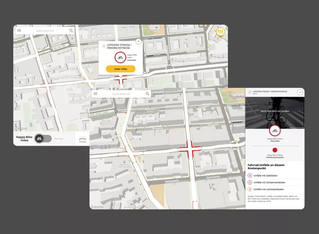 Hinweis: Die Plattform wird derzeit nicht mehr aktiv gepflegt und entspricht daher nicht dem aktuellen Stand der Berliner Radverkehrsplanungen. Inspiriert von der Software wurde durch die InfraVelo GmbH Berlin das Angebot www.infravelo.de/karte entwickelt.