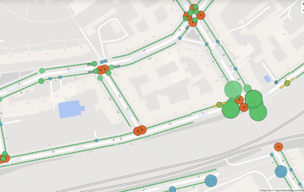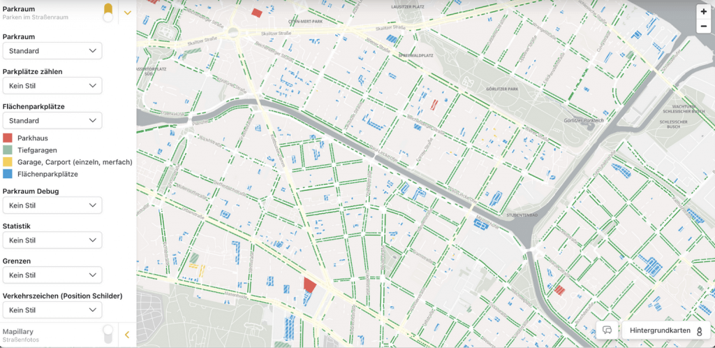 Wir erfassen Parkplätze nicht wie üblich als Flächen, sondern als Informationen darüber, in welchen Straßenabschnitten wie geparkt werden darf – ergänzt um alle relevanten „Nichtpark“-Informationen wie Einfahrten, Haltestellen, Kreuzungsbereiche oder Radbügel. Diese Daten werden zu punktgenauen Parkbereichen ausgewertet. Dadurch haben Sie neben den Parkplätzen auch Informationen zu allen weiteren Nutzung des Fahrbahnrandes. sämtliche weitere Nutzungen des Fahrbahnrandes.