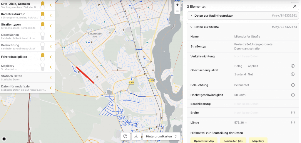 Daten zum Straßenraum, Zielorten und Radabstellanlagen sind bereits inkludiert